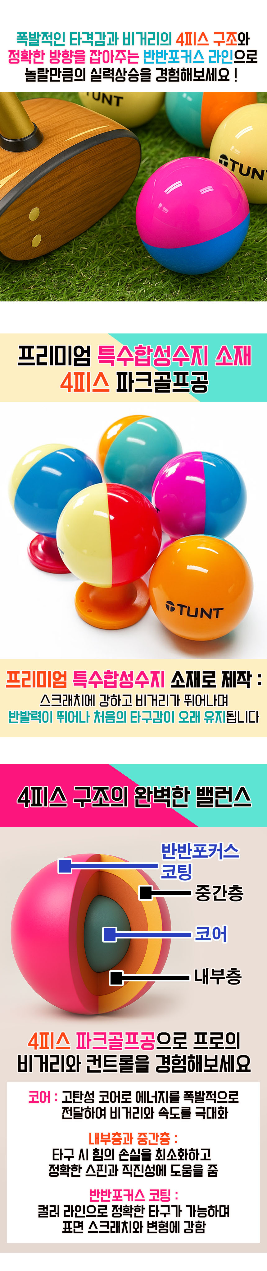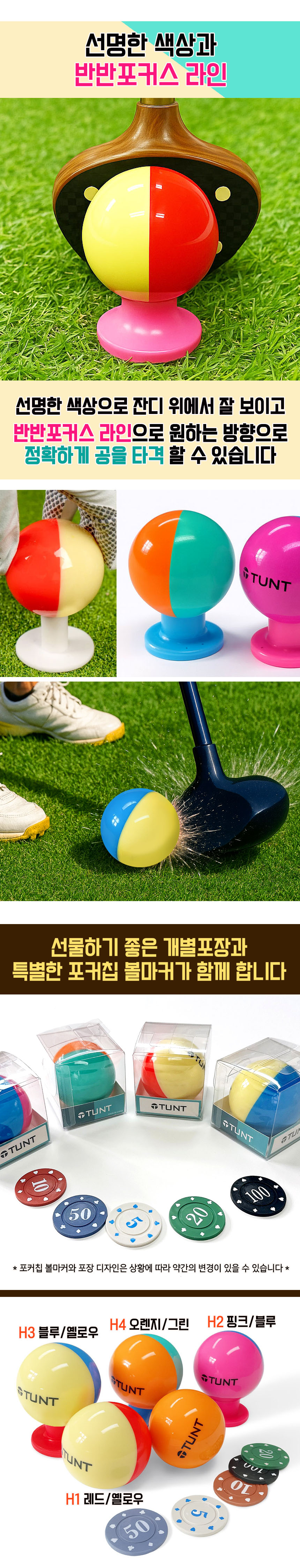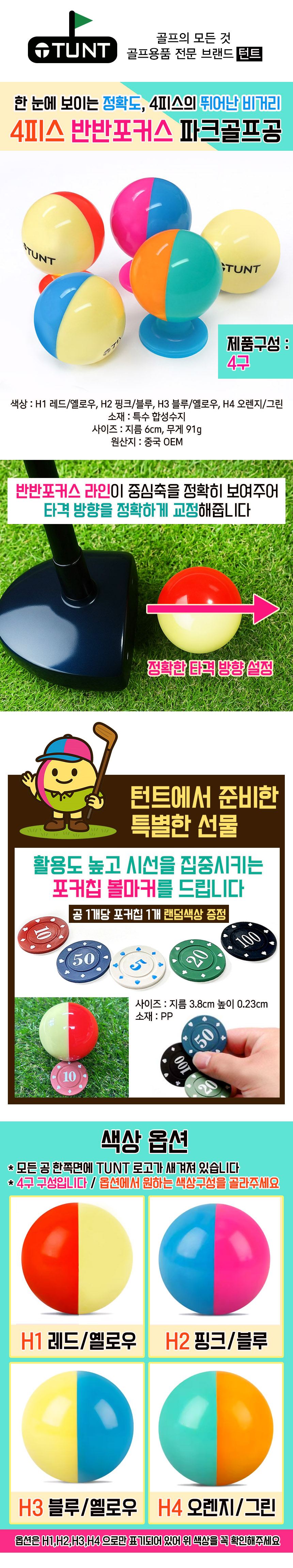 | 제품구성 | 턴트 4피스 반반포커스 파크골프공 4구 | ||